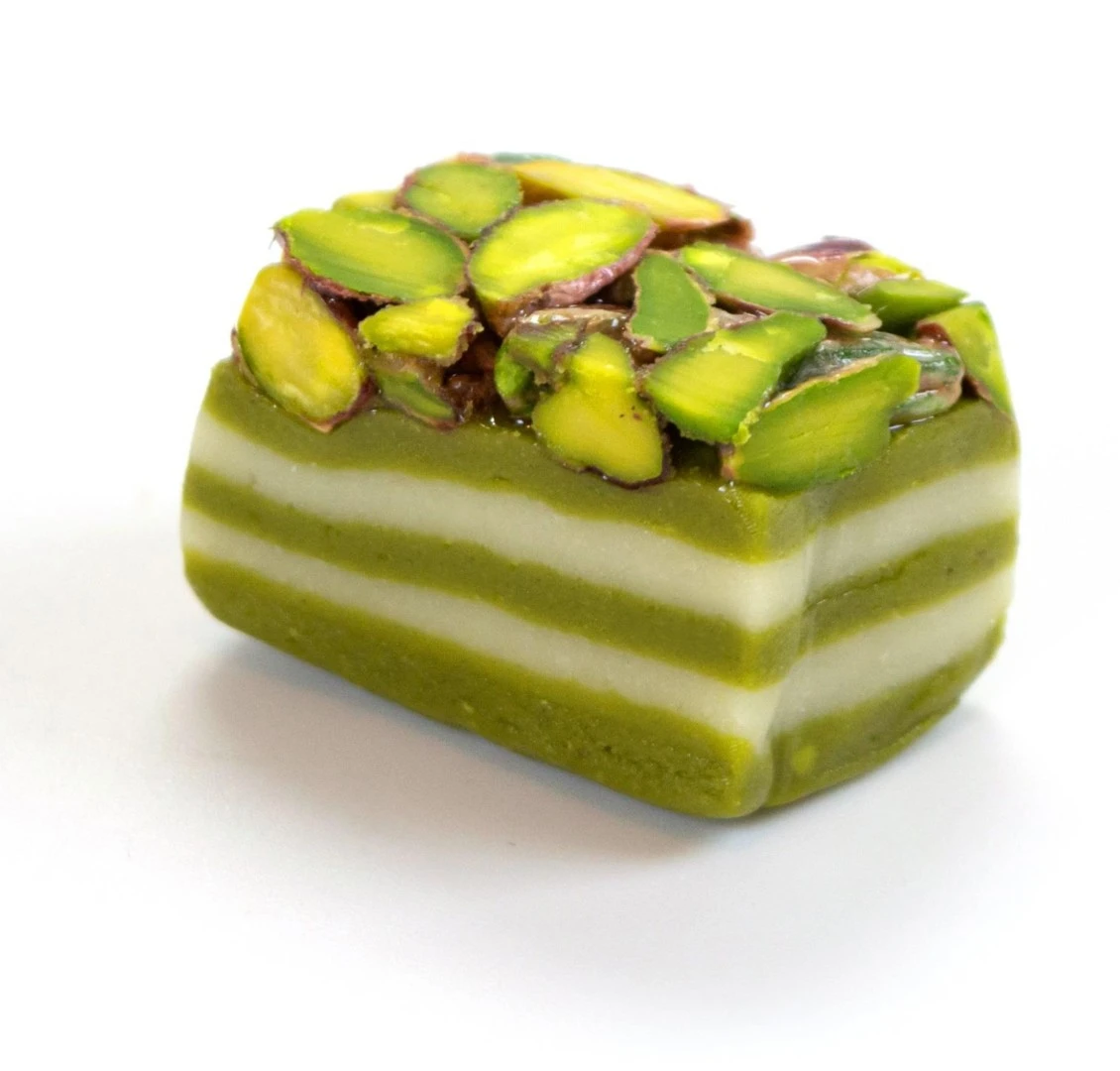 Traditional Luzina cocktail layered dessert, delicately flavored with orange blossom water and topped with premium pistachios.