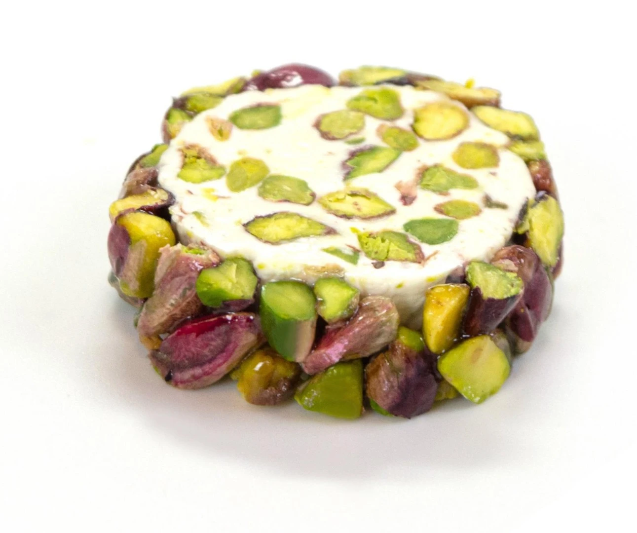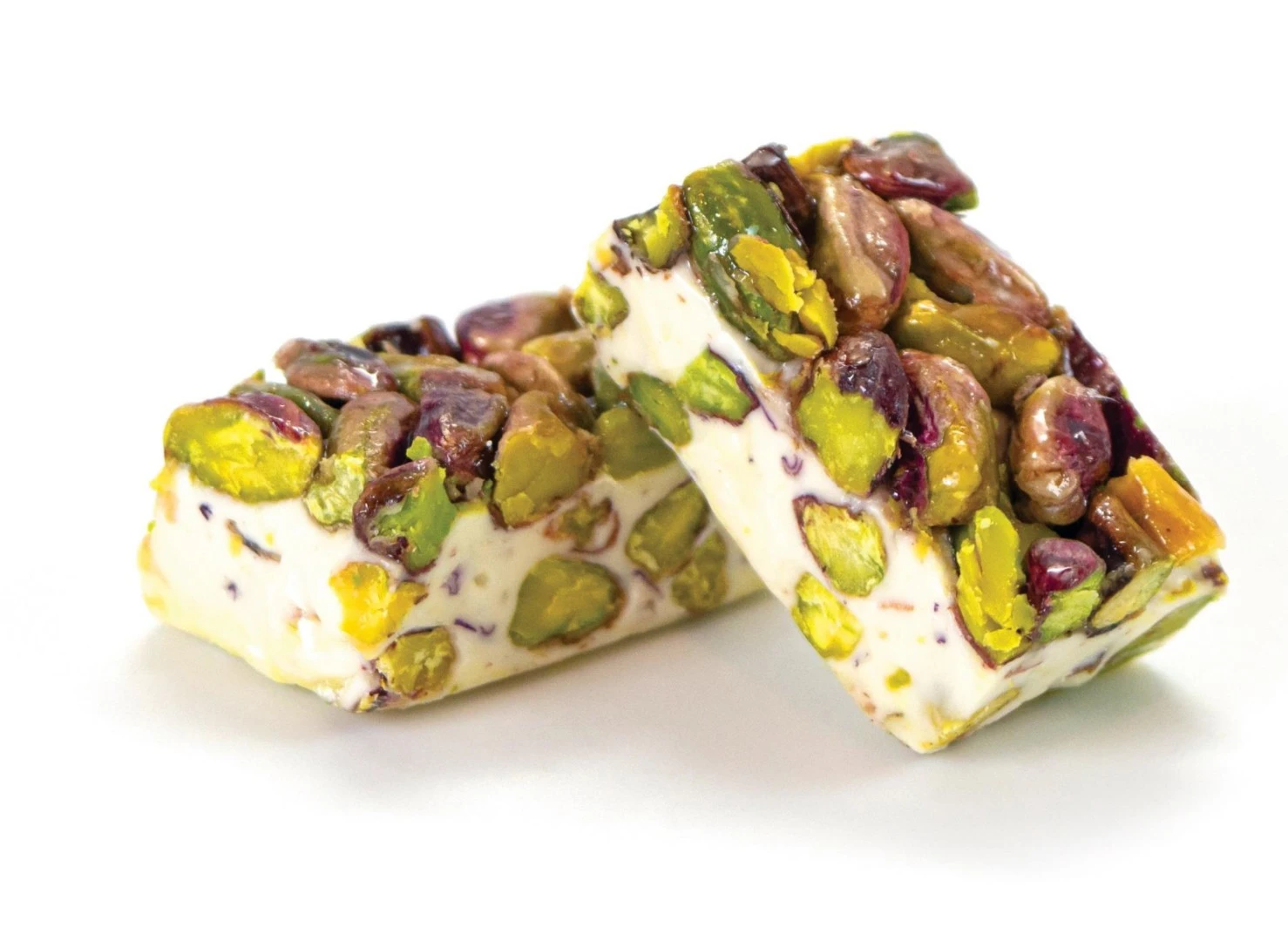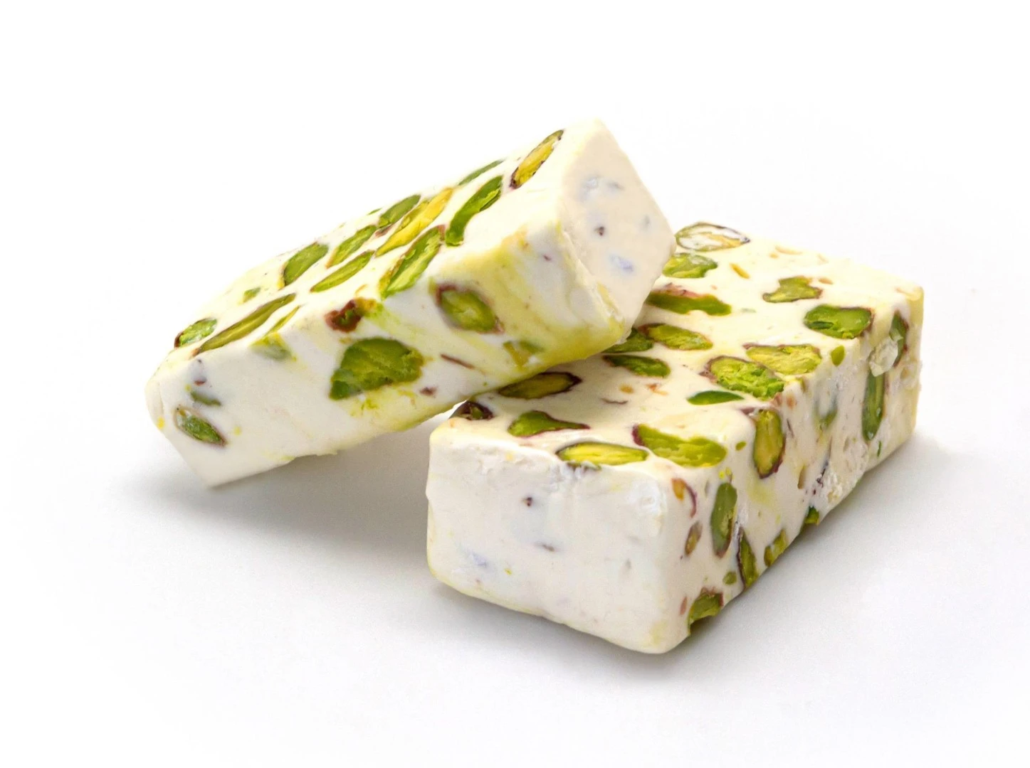 Traditional nougat with pistachios and a soft texture.