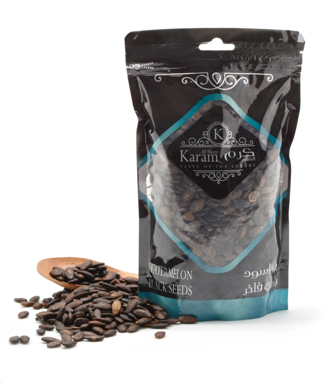 Premium black watermelon seeds, carefully roasted to deliver a deep, savory flavor and satisfying crunch.